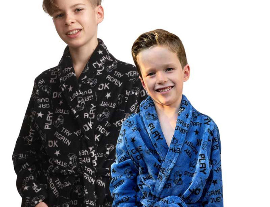 Tienerbadjassen en kinderbadjassen met verschillende prints