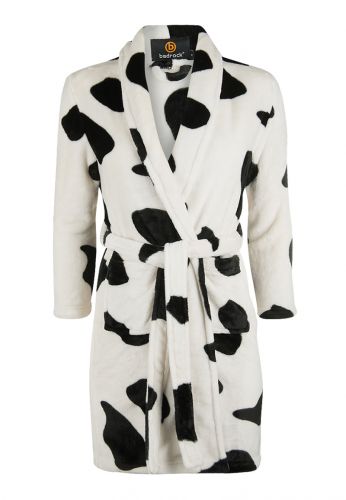 In de koeienbadjas aan het ontbijt, uw kinderen zullen er naar uit kijken. Daar past ’n fris glas melk bij! De badjas is gemaakt van zalig zacht fleece, als een knuffelkoe valt die om de schouders van uw kind. Wat ’n plezier om te dragen!